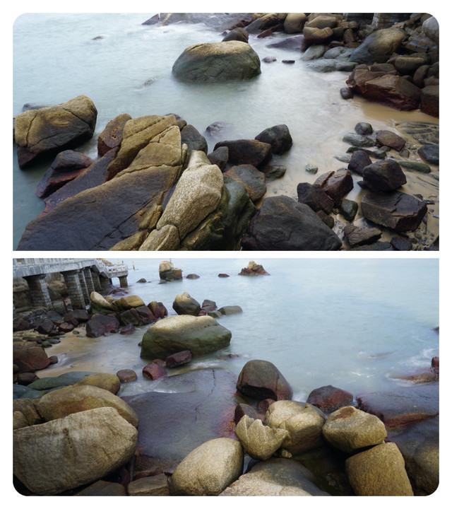 再拍海滩和礁石