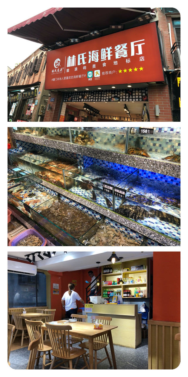记得上一次在走过鼓浪石之后就拐弯到小巷里买防晒冰袖去了,然后凭着缘分找到了这家餐厅,但实际上餐厅就在距离内厝澳码头的不远处,之前吃的煎蟹餐厅就在这家餐厅的背后,中间只隔了一个磐诺酒店。
