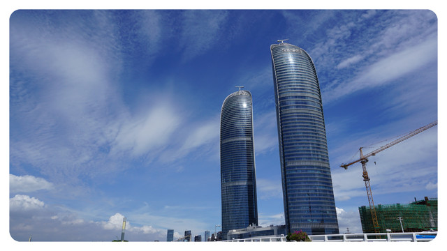 大约上午10点的时候,飞机已经来到了厦门市的高空,在一片朦胧中我一眼就找到了隐藏在薄云背后的厦门市标志性建筑:双子塔。