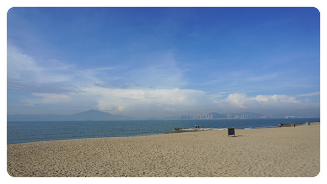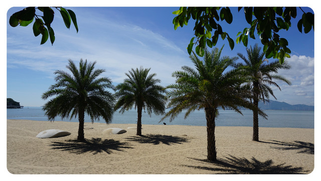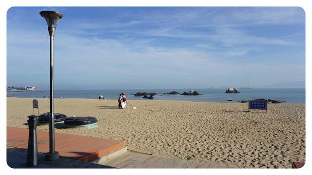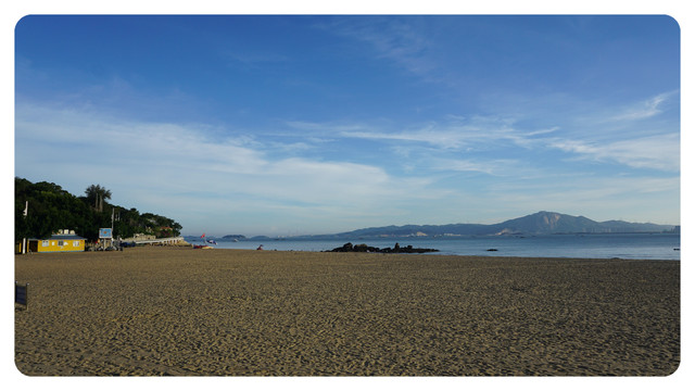 今天依然是个工作日,加上八点半的时候太阳已经很晒,所以沙滩上基本都没有什么人,然而我还是被这高颜值的天空和海水给吸引过来了。