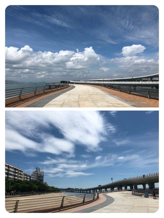 一路向前的木栈道,必须再走一次。前方天空那片遥远的云系应该是那个奔去海南的台风吧