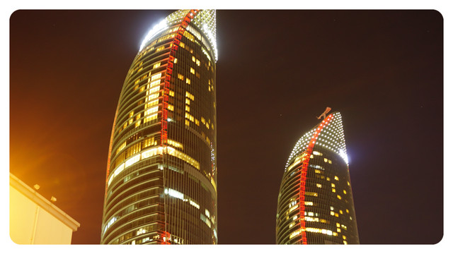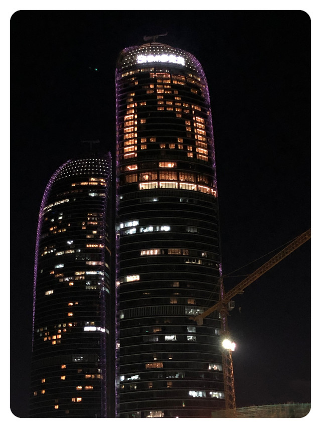 临走之前,再来一张夜色下的双子塔。只是不得不说,旁边工地的大吊车真的是很煞风景,三个月前来的时候就已经在了,不过我想能够造在这里的,一定也是个高级大楼。