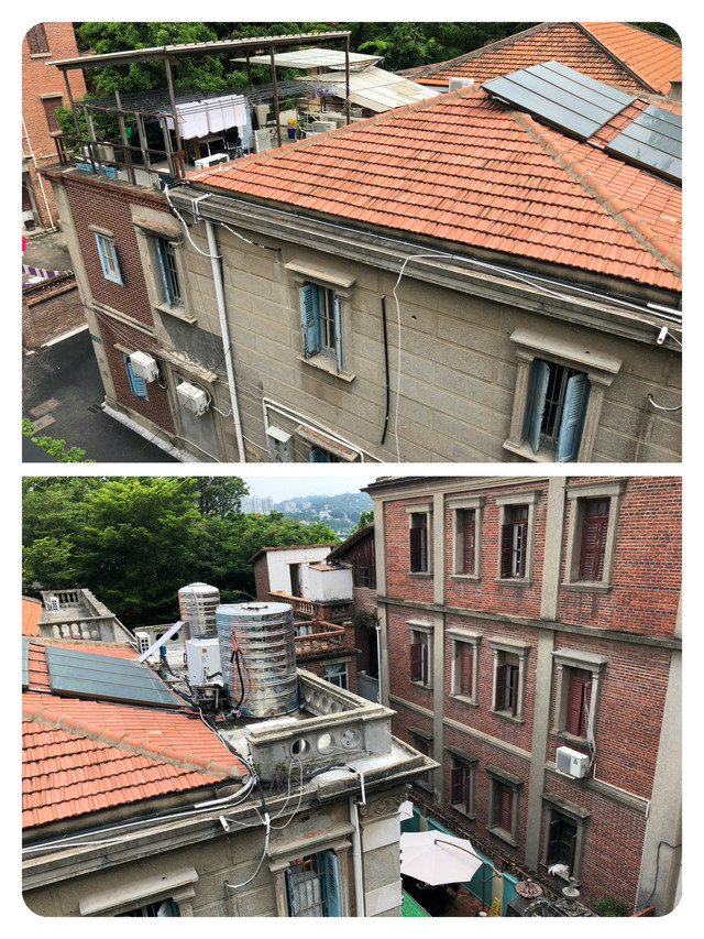 再看一眼阳台外,对面屋顶的平台上每天都会有白色的毛巾晾出来,所以这幢房子应该也是一家民宿吧。