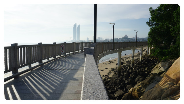 夕阳西下,最美的时刻已经到来。走在这一段厦大白城沙滩旁的栈道上,勾起了上一次行走在这里的回忆。