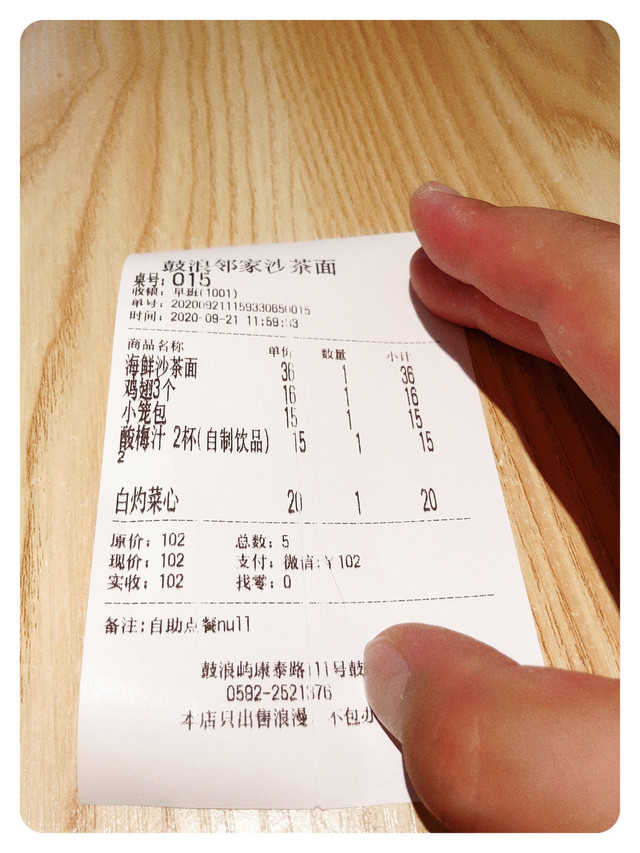另外,来这一家餐厅吃饭的传统就是要拍张小票当做留念,不得不说这家的价格真心不贵~