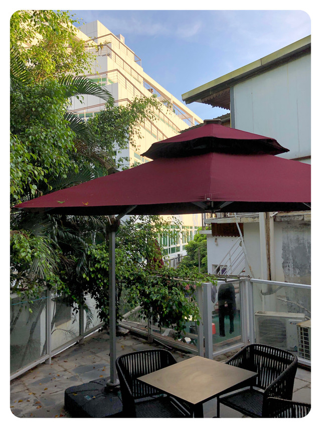 唯一和宣传图不同的是,楼顶天台现在已经变成露天餐厅,老板娘解释道是因为经济压力只能暂时租出去了。不过站在栏杆前依然可以眺望远方,风景依然很好。