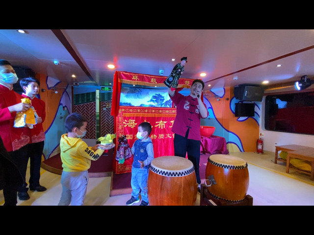 今天跟朋友们来到和平码头坐着“太古三号”环鼓夜游,准备好身份证,多加了点衣服(海上风太大)愉快地跟伙伴们登上了这艘周身灯光的三层游艇,船的一层是表演闽南传统文化布袋戏,