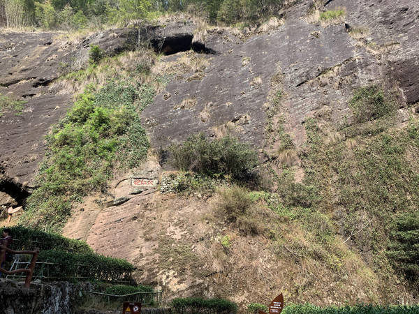 武夷山除了风景秀丽还有着茶山美誉,声振海内外的大红袍母树已经近在咫尺怎可不去,导游劝说:大红袍母树名气虽大,但是景区不去后悔,去了更后悔。这么说都是源于远处石壁上那不起眼的小灌木就是大名鼎鼎的大红袍母树。很多游客以为可以看到百年古树参天的景象,那应该是会失望的吧。