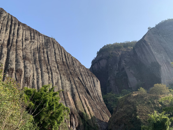 走到山下九曲溪旁时,别忘了回望天游山下的晒布岩,这是武夷山风景区最大的岩石。