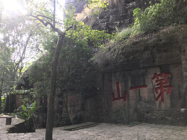 后山下山路非常平坦,森林清幽,别有一番风味。沿路涧旁的石壁上,还有历代摩崖石刻多处。