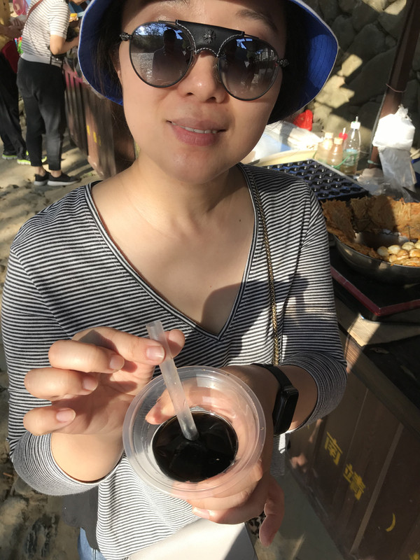 天游峰虽然不高但是山路狭窄陡峭,爬一圈下来还是很耗费体力的,尤其老公恐高不敢回看一直催促我往上爬,身体疲惫的我们也乐得接受导游的邀请,去她们村里喝茶。
