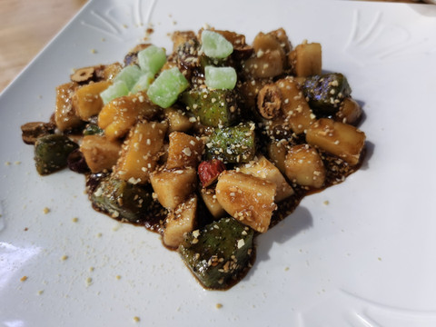 菜量大到出奇,即使不是海鲜也能感受到烹饪的用心。一道甜品也能如此讲究,用三种类型的粿条炒制,加上果干、蜜饯、撒上芝麻,让平时对糯米类食品忌口的我心情顿时愉悦很多,不能吃海鲜的遗憾由这盆年糕来满足。