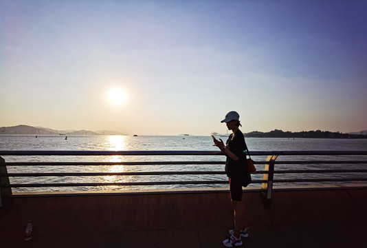 早晨六点的海边,静谧而美好。