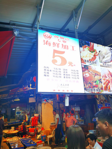市场里的海鲜加工餐馆太密集太迷你,以至于DP网上基本没有评论,选择哪家全看你自己的,要么对海鲜很识货,可以精准挑选;要么就凭“眼缘”,我们就属于后者。直接忽略那种卖力吆喝或以华而不实的“噱头”吸引食客的店家,最后挑选了一位戴着眼镜,温柔斯文的小姑娘,态度不卑不亢,有问必答,给人比较实在的感觉,事实证明也确实如此,食材新鲜,价格美丽,既然点评上没有,那我就在这重点推荐一下。