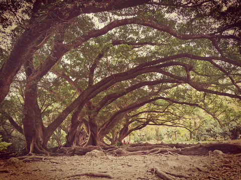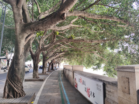 “成精“的大榕树。马路中间时不时的会看到突兀的站立着一棵榕树。