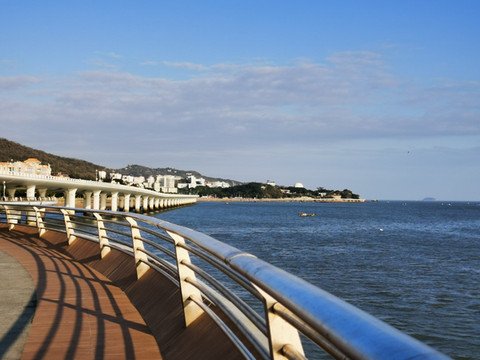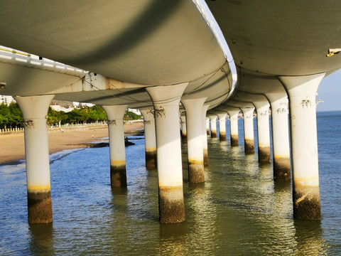演武大桥基本等同于建造在海上的立交桥,除了正常的车行之外,还建有专门的人行观光平台,可供休闲观光,散步运动,是个极其美妙之所在。