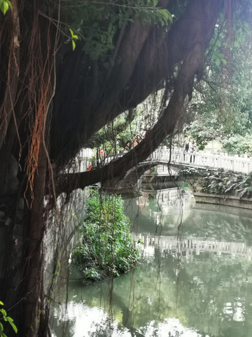 亮点一,风景。先说杨家溪。一幅巨大榕树下,阳光从厚实的树叶缝隙中透过,照射在老翁和他牵着的牛身上的图片成为了杨家溪最最经典的宣传大片,我们就是冲着那张图片去的杨家溪榕枫公园。遗憾的是当天没有太阳,没有光束、道具牛在一旁的草垛上休息,老翁不知去向。但是我们依然被巨大的榕树群所震撼,地面上是盘根错节的榕树根,头顶上是如伞面般铺开的榕树冠,把天遮挡的严严实实。成百上千年的老树,放在《西游记》里都是会安排幻化成精的。