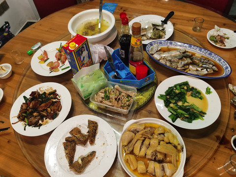 虽然我不能吃海鲜,但我们二人组因为有两位亲人的加入,可以多点菜多尝口味,还是让我感到欢欣鼓舞,满满的一桌海鲜大餐看着就让人满足。