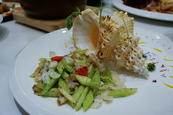 黑松露炒螺片:螺片鲜甜脆嫩,搭配经典的西芹,再加上黑松露那种自然散发的独特香气,令人回味无穷。
