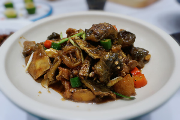 黄焖甲鱼:黄焖的经典烹饪法让甲鱼肉带上一点酒香,甲鱼肥厚的裙边又兼具滋补功效,宴请宾客可体现主人对宾客的关心和呵护。口感丰富且胶原蛋白满满。