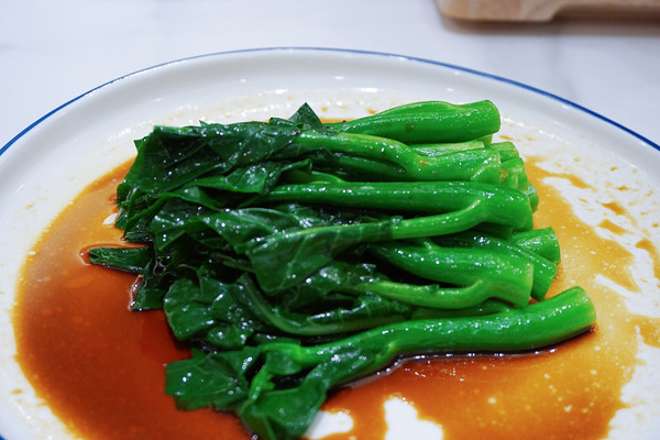 几乎每桌都点的白灼芥兰,芥兰白灼淋豉油,吃得出菜的菜味和清爽的口感。