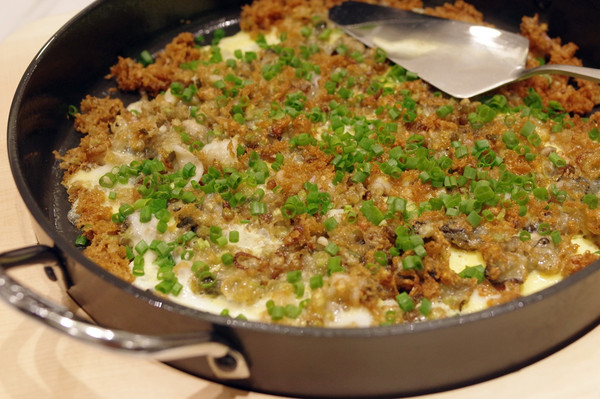 金牌蚝仔烙:广东蚝仔烙与厦门的海蛎煎不同,广东蚝仔烙用了小而爽脆的珠蚝,加入了秘制海鲜干贝粉。口感酥脆的感觉和嫩滑同时具备,口感层次丰富。
