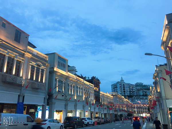 中山路上独特的连排骑楼建筑,以粉红和乳白作为主色调,有着浓郁的南洋风情。在这条宽宽长长的街道上,藏匿着数不清的小吃、风格迥异的商铺和弯弯绕绕的小巷。