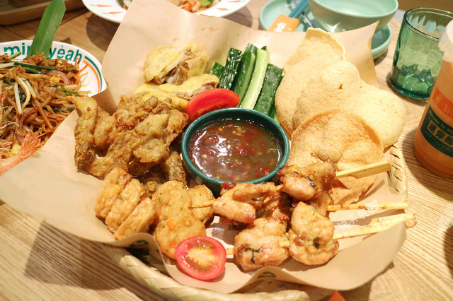 一听这名字,就好像来到泰国水上市场,招招手叫住摆摊的小船,点上一堆炸食,炸鸡、炸鱼、炸肉、炸虾片,并且搭配了黄瓜条、圣女果等时蔬,蘸着特别的酱汁,又香又酥,吃到停不下来。