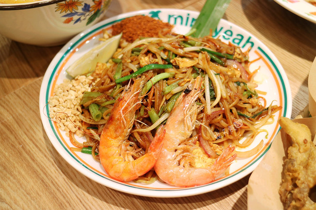 汇集了酸甜鲜辣的泰式金边炒粉,配料丰富,有大虾,还有花生碎、辣椒粉、柠檬等香料,真的是吃一口就有秒回泰国街头的感觉。