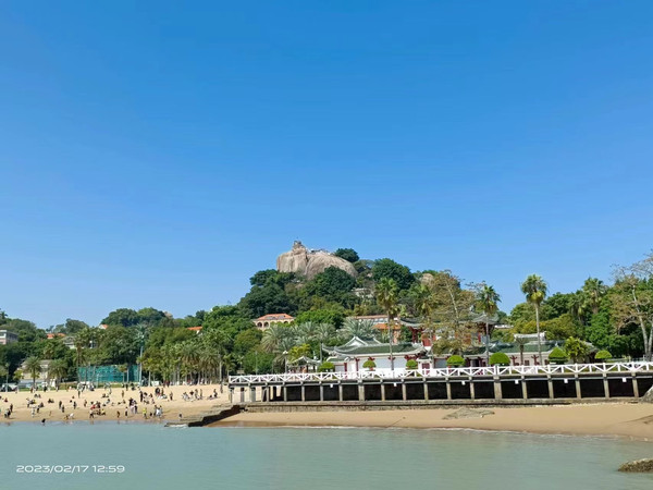 站在海上走廊可以拍到整个日光岩,沙滩