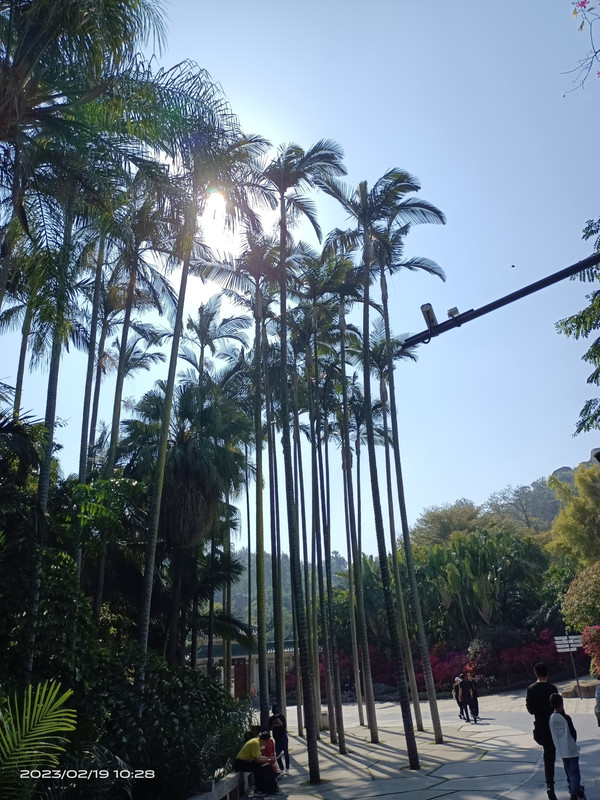 记得提前在网上买票,然后门口直接刷身份证进入,8点前入园,人少。里边有观光车,观光车是8点开第一班,只能进去窗口买观光车票,10一位,可以坐6次,最有看点是就是雨林世界和多肉植物园,所以6次完全够用。门口笔直的大王椰,还有邓爷爷亲手植树。