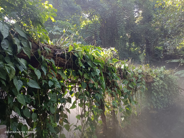 枯木逢春,一棵干枯的树干上长满了绿罗,雨林中的绿罗生命力极强,叶子是能长到我们室内的三倍大!