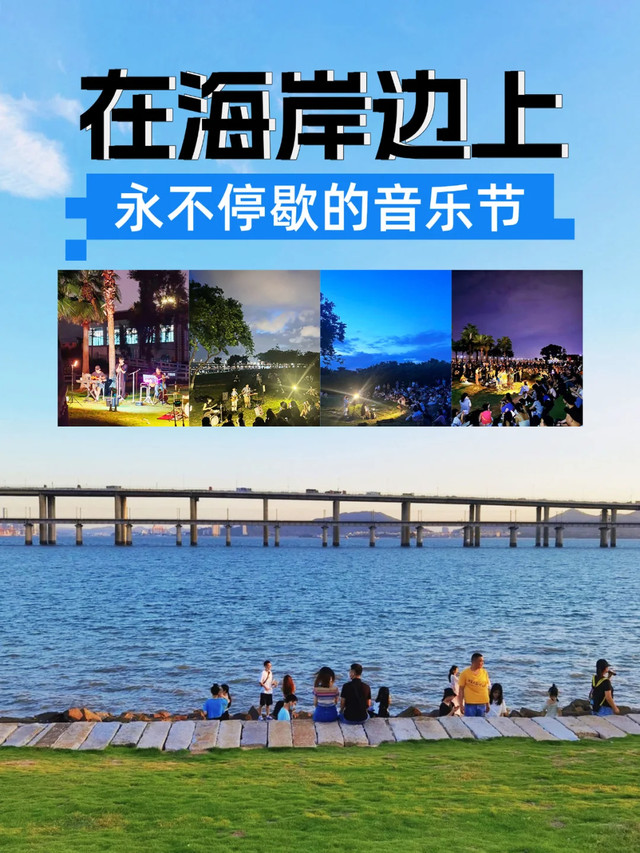 🌄傍晚在十里长堤赏日落,经常会有街头艺人表演,