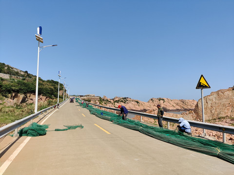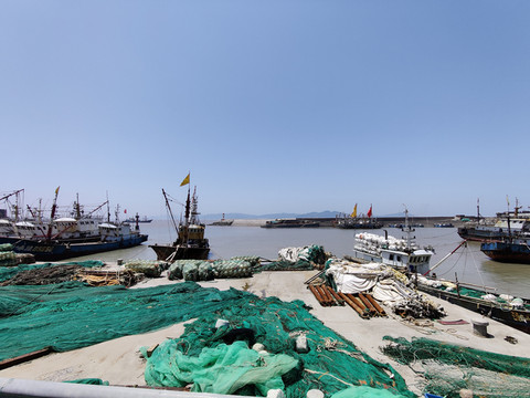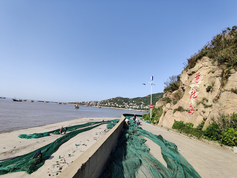 第二天:黄龙岛1日游,自驾到马迹山码头做客船到黄龙岛,车票15元/人。黄龙是一个充满当地乡土人情的小岛,走近了空气中弥漫淡淡的鱼腥味。去的时候刚到休渔期,渔民们都在整理渔网,广场上、马路上到处都是。岛上交通方式就只有公交车,30分钟左右一般,均价2元/次。还是那种撕车票,还挺久没见了。