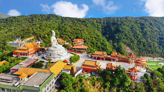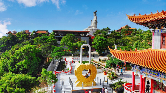 东莞观音山的观音圣像还未开放,可以去聚缘堂二楼近看,还可以凭栏远眺吉祥苑,将同心锁、鹊桥、玉露瓶和紫云阁等美景尽收眼底。