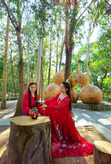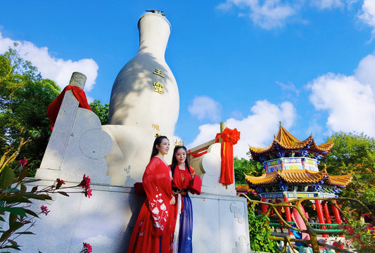 求得好姻缘之前,先享受单身生活,双胞胎姐妹看到大葫芦就不走了,说要把酒言欢畅谈人生,也希望在这里祈求家人身体健康、长命百岁。