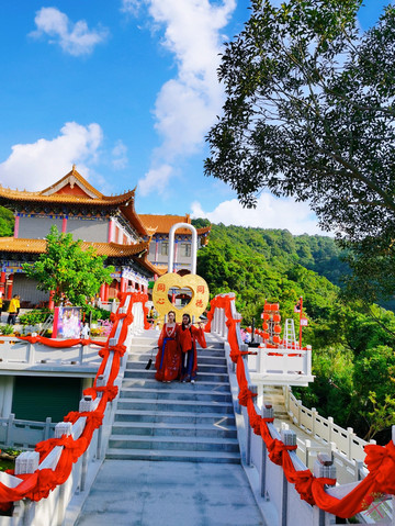 作为姻缘福地的东莞观音山,有很多求姻缘的景点,包括三生石、同心锁、姻缘路、许愿池和月老台等等。每天都有情侣来此许下海誓山盟,亦有单身男女来求姻缘,最终有情人终成眷属。
