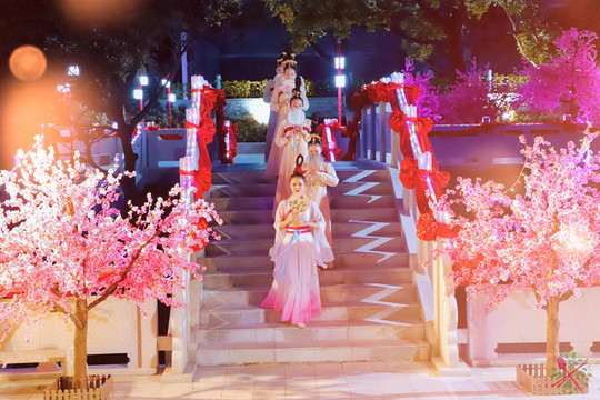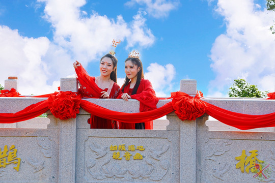 这个七夕情人节,东莞观音山的七夕鹊桥会,正上演唯美动人的歌舞,有繁华似锦的《天宫舞曲》和爱情故事《山之恋》。