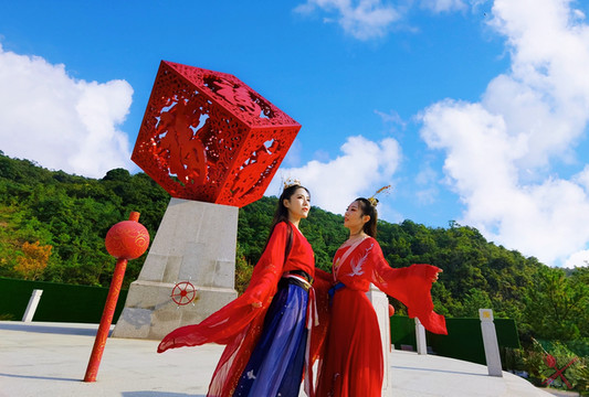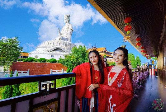 为了许愿求姻缘,我们和网红双胞胎王室姐妹慕名而来,打卡东莞观音山的网红景点。身穿汉服的双胞胎姐妹,美如天上的仙女,她们在月老台祈求好姻缘,走上鹊桥眺望美景,转动3吨重的天下第一福,在世界最大的花岗岩观音像前许愿,还在同心锁下许愿,只求愿得一人心白首不相离……