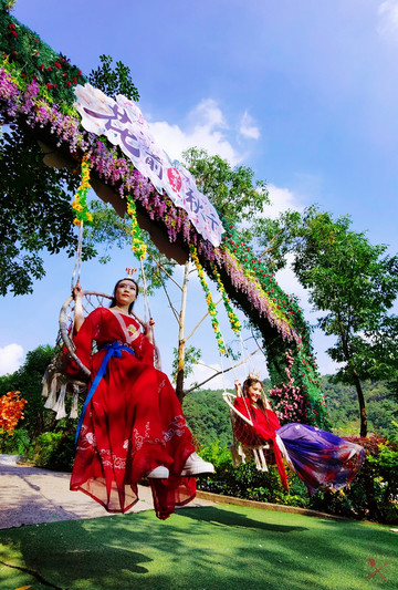 想拍出唯美的网红大片,只要穿上汉服坐在秋千上,就能拍出飞跃天空的古风照。清爽怡人的山风吹来,在秋千上远眺群山和蓝天白云,如此良辰美景,令人心旷神怡。