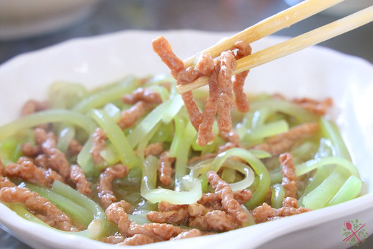 原本以为莴笋炒肉丝是荤菜,直到尝过“肉丝”之后,才发现原来是豆腐干,仿肉素菜能以假乱真,可见师傅厨艺了得。