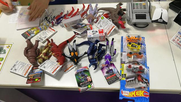 在火影忍者区域翼龙旁边的抓娃娃机,我一个100日元硬币,抓上来的两个挂件,太幸运了呢~