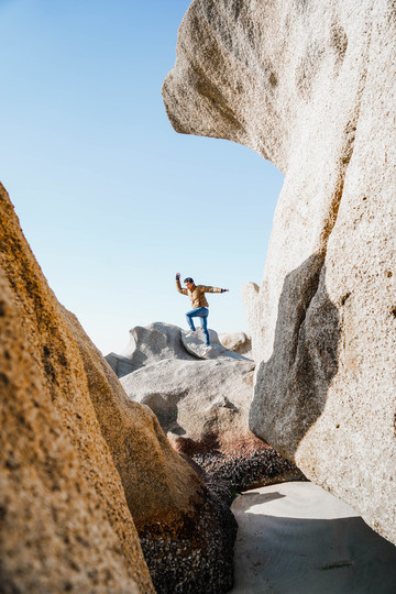 磨子石公园就在巽寮湾里面,这里真的是 惠州 新晋的网红打卡地,在各 大社 交平台上大热,随便都能刷出关于这里的笔记,因为也实在太好拍了。这里有各种造型各异的石头,怪石嶙峋,只要站在里面随手一拍,都是大片,特别适合小姐姐来这里打卡拍照,就连我这个怪叔叔,拍出来都可以媲美时尚杂志封面就可见一斑。可惜太太雪梨还在家照顾小孩,等孩子长大了,一定要带他们来这里。