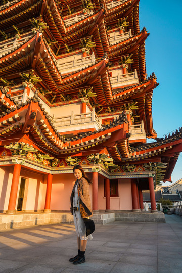 日落的时候,在这里拍照真的太好看了,让我想起了《千与千寻》里面的设计, 中国 古代建筑的魅力真的太大了,同行的舒菜同学也超级喜欢这里。