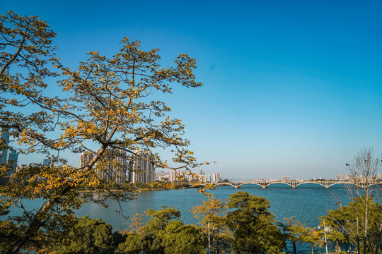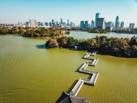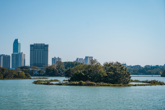 湖中心还有一座鸟岛,是很多候鸟的栖息地,每逢冬季都会看到它们,特别是日落的时候,还会看到“落霞与孤鹜齐飞,秋水共长天一色”的美景。
