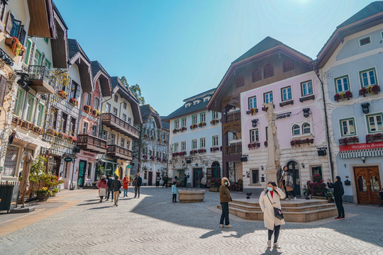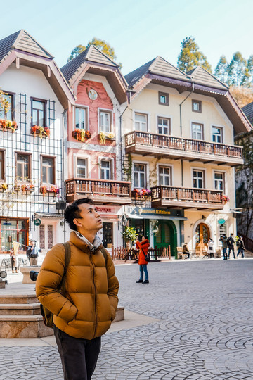 这里真的是名副其实的“童话王国”,五矿·哈施塔特小镇是以 奥地利 哈尔施塔特 小镇作为设计蓝本的,园区里有城堡,湖泊,彩色小屋,是继磨子石公园后,我最喜欢的景点。可惜雪梨还在家带小孩,要不然,这次图片的主角绝对是她们俩。