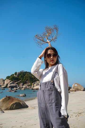 临走前我们在沙滩上还发现了一个树枝,居然还可以带在头上当皇冠,一点都不违和,生活真的不缺乏美,缺乏的是发现美的眼睛。