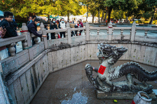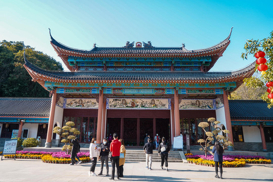 冲虚古观是一座四合院式的建筑,包括山门、正殿等。有殿宇五重,分别为灵官殿、三清殿、黄大仙殿、吕祖殿和葛仙殿,此外还有寮房等附属建筑百余间。因为同学的小伙伴说,进道观最好不要拍照,所以我只在外面拍了一下外观。