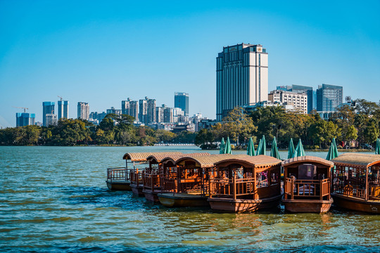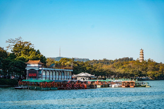 中国 有三大西湖, 杭州 西湖, 惠州 西湖,还有 安徽 的颍州西湖,这三个地方都因为北宋大文学家苏东坡曾在这里当过官,因此而出名。最为人熟悉的莫过于 杭州 西湖,但是原来 惠州 的西湖一点也不亚于 杭州 的。 惠州 西湖面积辽阔,湖岸弯环曲折,湖上洲屿点缀、三面青山环抱。湖泊东西最宽处达4公里,南北最长达6公里,面积最大时有10平方公里,湖区面积约80平方公里。在烟波浩淼的湖面上,堤桥如带,把湖面分割成五大部分,素有“五湖六桥”之称,苏东坡也盛赞 惠州 是“山水秀邃”,而且 惠州 的西湖总面积比 杭州 的还要大。当地人说如果来 惠州 没有去过西湖,那就不算来过,这里也是 惠州 的中心城区。