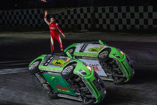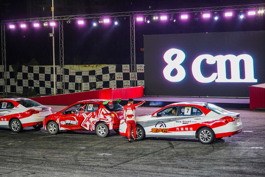 后来两位车手有尝试了辆车间距30cm的表演,无问题!